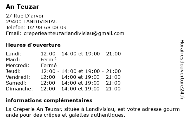 Lundi | 12:00-14:00 et 19:00-21:00 |