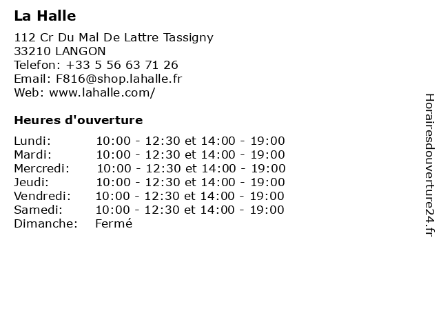 | Mardi | 10:00-12:30 et 14:00-19:00 |