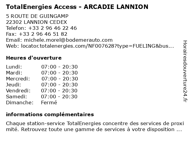 Termes de recherche pour TotalEnergies Access - ARCADIE LANNION:lannion, access, total, arcadie, gas station, station service, tankstelle, totalenergies |