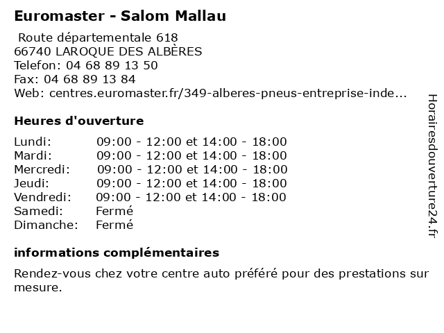 Termes de recherche pour Euromaster - Salom Mallau:euromaster, salom, mallau, magasin de pneus |