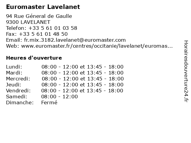 | Lundi | 08:00-12:00 et 13:45-18:00 |