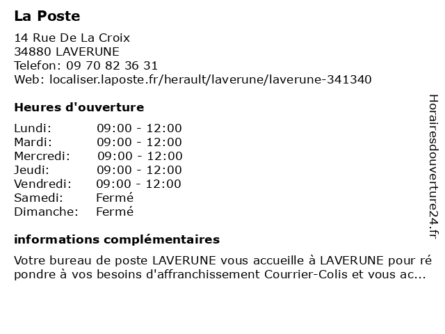 1 La Poste (Distance: 2,25 km) 10 Departementale, 46360 Lauzès express chronopost, la, poste, réexpédition internationale 2 La Poste (Distance: 2,99 km) - Route de Saint-Georges-d'Orques, 34990 Juvignac express chronopost, la, poste, réexpédition internationale 4 La Poste (Distance: 4,03 km) - Avenue du Passet, 34570 Pignan express chronopost, la, poste, réexpédition internationale 5 La Poste (Distance: 4,48 km) - Rue de la Mairie, 34690 Fabrègues express chronopost, la, poste, réexpédition internationale 6 La Poste (Distance: 8,44 km) - Rue Frédéric Mistral, 34110 Frontignan express chronopost, la, poste, réexpédition internationale |