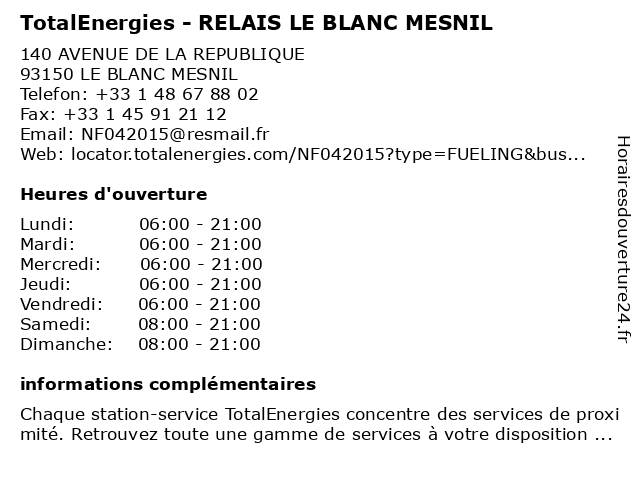 Termes de recherche pour TotalEnergies - RELAIS LE BLANC MESNIL:relais, le, blanc, mesnil, total, gas station, station service, tankstelle, totalenergies |