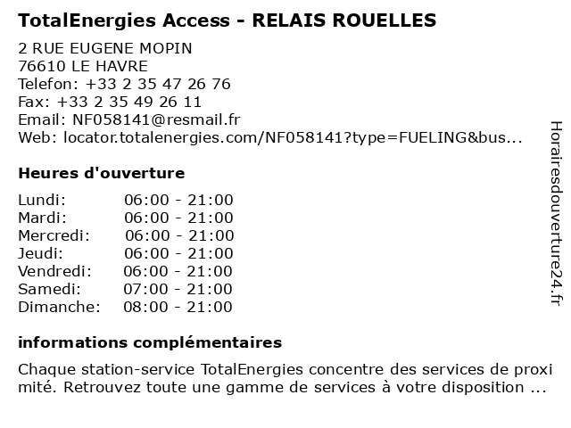 Termes de recherche pour TotalEnergies Access - RELAIS ROUELLES:relais, access, total, rouelles, gas station, station service, tankstelle, totalenergies |
