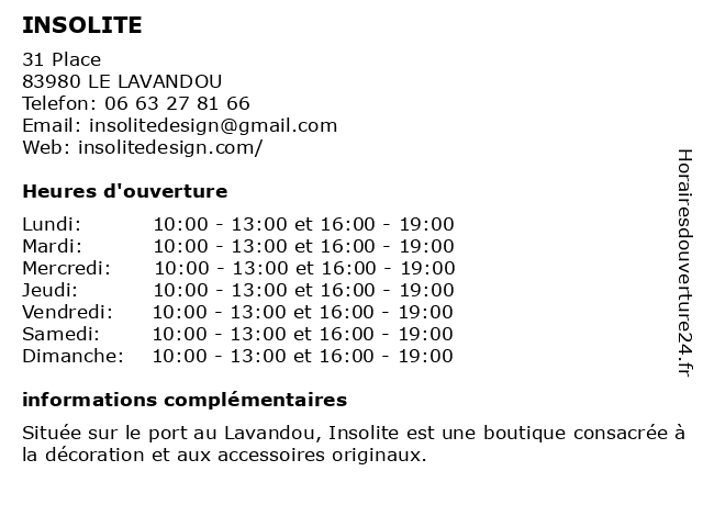 | Lundi | 10:00-13:00 et 16:00-19:00 |
