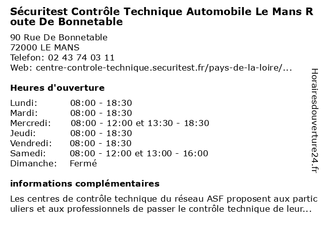 | Lundi | 08:00-18:30 |