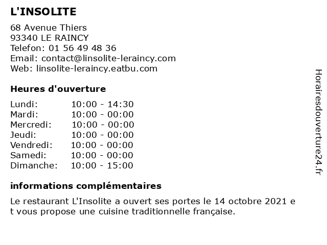1 L'Insolite (Distance: 13,01 km) 58 Rue Du Poteau, 75018 Paris bar, café, insolite, l'insolite, nso, restaurants 2 Super-Insolite.com (Distance: 10,51 km) 43 Rue de Belleville, 75019 Paris bar, boutique, cadeaux, cuisine, décoration, insolite, insolite.com, super 3 L'Acolyte de l'Insolite (Distance: 11,41 km) 49 Rue de la Folie Méricourt, 75011 Paris bar, café, de, l'acolyte, l'insolite, restaurants, simpl 4 Insolite Joaillerie (Distance: 12,27 km) 7 Rue Réaumur, 75003 Paris bijoux, bracelets, horlogerie, insolite, joaillerie 5 Arcanum - Paris Secret et Insolite (Distance: 13,19 km) 15 bd Sébastopol, 75001 Paris agence, arcanum, et, guide, historique, insolite, paris, secret, touristique, visite 6 Objet Insolite (Showroom) (Distance: 15,38 km) 89 Rue de Sèvres, 75006 Paris fabricant, insolite, lampes, luminaires, lumières, objet, paris, showroom |