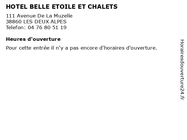 | Appeler HOTEL BELLE ETOILE ET CHALETS | |