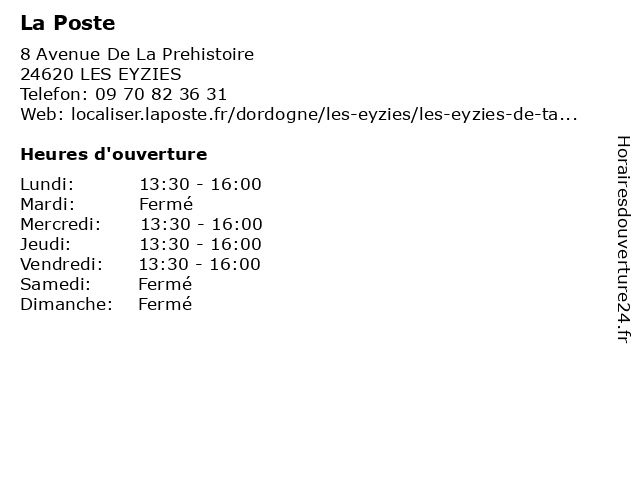 1 La Poste (Distance: 9,57 km) 149 Route de Sarlat, 24620 Marquay agence, assurance, banque, banque postale, bureau de poste, chronopost, colis, courrier, dps, expéditions internationales, la, point, postale, poste, relais, timbres, téléphonie, ups, western union 2 La Poste (Distance: 9,66 km) - Lieu dit Le Bourg, 24260 Saint-Chamassy agence, assurance, banque, banque postale, bureau de poste, chronopost, colis, courrier, dps, expéditions internationales, la, point, postale, poste, relais, timbres, téléphonie, ups, western union 3 La Poste (Distance: 11,37 km) 6 Rue Principale, 24580 Plazac agence, assurance, banque, banque postale, bureau de poste, chronopost, colis, courrier, dps, expéditions internationales, la, point, postale, poste, relais, timbres, téléphonie, ups, western union 4 La Poste (Distance: 12,77 km) - Place de la Mairie, 24580 Rouffignac-Saint-Cernin-de-Reilhac agence, assurance, banque, banque postale, bureau de poste, chronopost, colis, courrier, dps, expéditions internationales, la, point, postale, poste, relais, timbres, téléphonie, ups, western union 5 La Poste (Distance: 12,78 km) - Lieu dit Le Bourg, 24170 Siorac-en-Périgord agence, assurance, banque, banque postale, bureau de poste, chronopost, colis, courrier, dps, expéditions internationales, la, point, postale, poste, relais, timbres, téléphonie, ups, western union 6 La Poste (Distance: 13,14 km) 1 Place André Boissière, 24480 Le Buisson-de-Cadouin agence, assurance, banque, banque postale, bureau de poste, chronopost, colis, courrier, dps, expéditions internationales, la, point, postale, poste, relais, timbres, téléphonie, ups, western union |