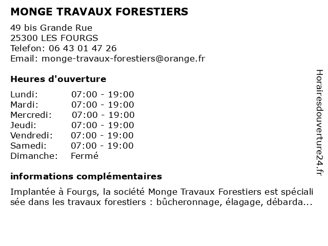 | Lundi | 07:00-19:00 |