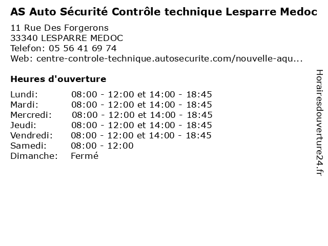 | Lundi | 08:00-12:00 et 14:00-18:45 |