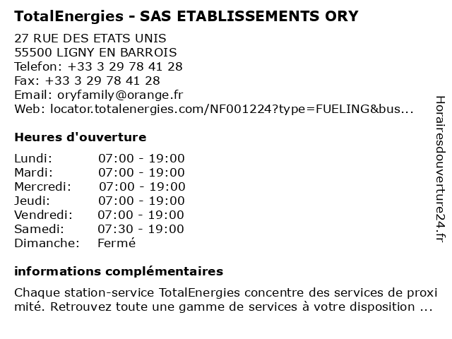 Termes de recherche pour TotalEnergies - SAS ETABLISSEMENTS ORY:sas, total, etablissements, gas station, ory, station service, tankstelle, totalenergies |