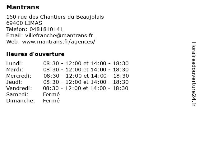 | Lundi | 08:30-12:00 et 14:00-18:30 |