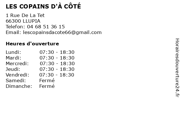 | Lundi | 07:30-18:30 |