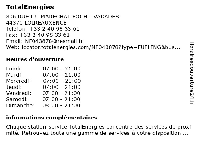 1 TotalEnergies - REL.VARADES PAYS D'ANCENIS (Distance: 3,74 km) A11-AIRE DE VARADES PAYS ANCENIS, 44370 VARADES d'ancenis, pays, rel.varades, station autoroute, totalenergies 2 TotalEnergies Station de recharge (Distance: 3,78 km) A11, 44370 Loireauxence borne de recharge, borne de recharge autoroute, borne de recharge rapide, ccs, chademo, charge haute puissance, charge+, charging station, de, ev, high power charge, ma charge rapide, mobility, recharge, recharger ma voiture, recharger voiture, station, station autouroute, station de recharge, station-service, supercharger, tankstelle, total, totalaccess, totalenergie, totalenergies 3 TotalEnergies Station de recharge (Distance: 3,91 km) A11 - AIRE DE VARADES PAYS DE LOIRE, 44370 Loireauxence borne de recharge, borne de recharge autoroute, borne de recharge rapide, ccs, chademo, charge haute puissance, charge+, charging station, de, ev, high power charge, ma charge rapide, mobility, recharge, recharger ma voiture, recharger voiture, station, station autouroute, station de recharge, station-service, supercharger, tankstelle, total, totalaccess, totalenergie, totalenergies 4 TotalEnergies - REL.VARADES PAYS DE LOIRE (Distance: 3,95 km) A11 -AIRE DE VARADES PAYS DE LOIRE, 44370 VARADES de, loire, pays, rel.varades, station autoroute, totalenergies 5 TotalEnergies - SARL GARAGE BAUDOUIN (Distance: 12,86 km) Rue d'Anjou, 49570 Mauges-sur-Loire baudouin, garage, gas station, sarl, station service, tankstelle, total, totalenergies 6 Station-Service TotalEnergies (Distance: 26,58 km) - Boulevard Pasteur, 44450 La Chapelle Basse Mer carburant, essence, pompes, service, station, totalenergies, véhicules |