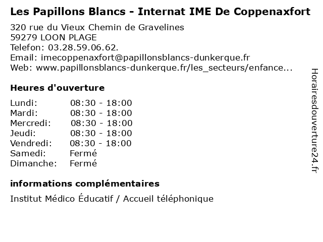 1 Les Papillons Blancs - SAJ Marc Anglade (Distance: 0,00 km) 320 rue du Vieux Chemin de Gravelines, 59279 Loon Plage aides, anglade, association, blancs, hébergement, les, marc, papillons, saj, social, soutiens, établissements 2 Les Papillons Blancs - IME De Coppenaxfort (Distance: 5,78 km) 2329 Route de Coppenaxfort, 59279 CRAYWICK aides, association, blancs, coppenaxfort, de, hébergement, ime, les, papillons, social, soutiens, établissements 3 Les Papillons Blancs - Appartements La Marelle (Distance: 7,25 km) 36 square de Coppenhague, 59760 Grande-Synthe aides, appartements, association, blancs, hébergement, la, les, marelle, papillons, social, soutiens, établissements 4 Les Papillons Blancs de Dunkerque (Distance: 7,73 km) - Rue Galilée, 59760 Grande-Synthe aides, association, blancs, de, dunkerque, hébergement, les, papillons, social, soutiens, établissements 5 Les Papillons Blancs - SESSAD (Distance: 7,92 km) 215 Route de Fort Mardyck, 59640 DUNKERQUE aides, association, blancs, hébergement, les, papillons, sessad, social, soutiens, établissements 6 Les Papillons Blancs - Foyer Le Comte Jean (Distance: 8,00 km) 680 rue Paul Dessinguez, 59944 Dunkerque aides, association, blancs, comte, foyer, hébergement, jean, le, les, papillons, social, soutiens, établissements |