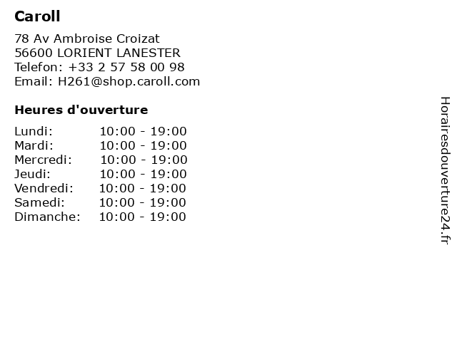 | Lundi | 10:00-19:00 |