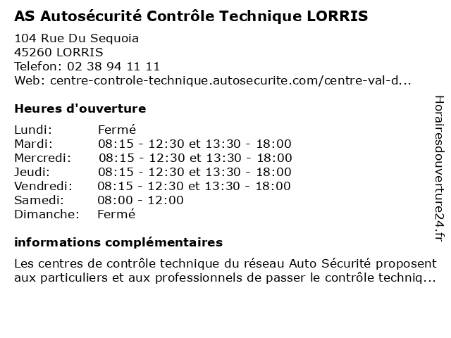Termes de recherche pour AS Autosécurité Contrôle Technique LORRIS:as, controle, technique, autosecurite, lorris |