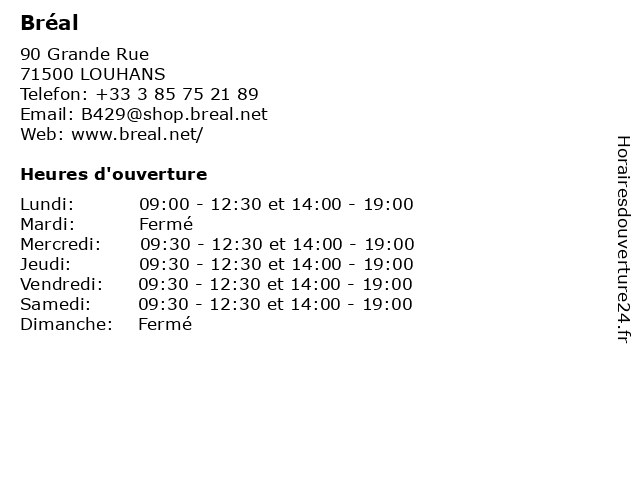 | Mercredi | 09:30-12:30 et 14:00-19:00 |