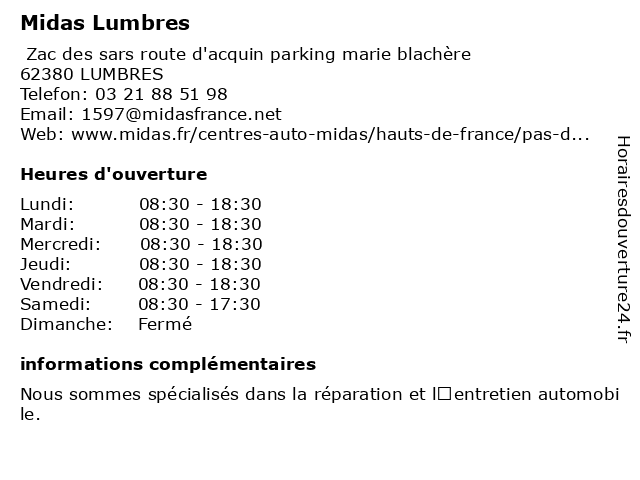 Termes de recherche pour Midas Lumbres:midas, lumbres, atelier de réparation automobile, service de climatisation automobile, magasin de pièces automobiles |
