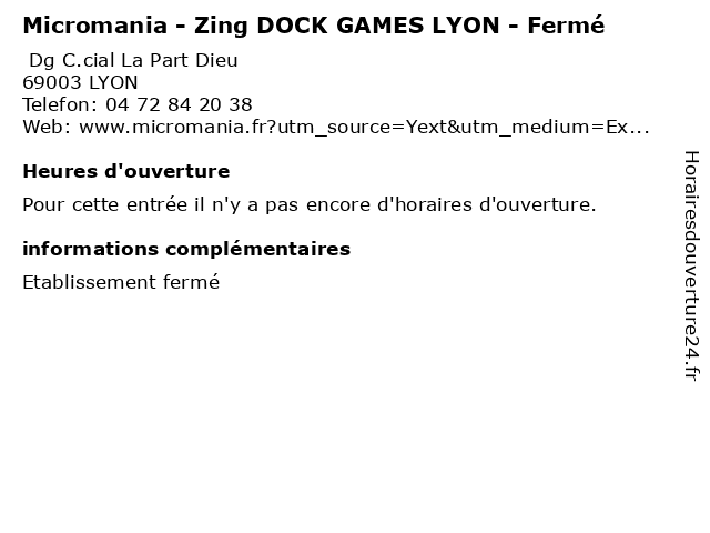 | Appeler Micromania - Zing DOCK GAMES LYON - Fermé | |