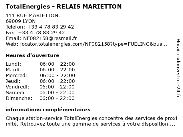 Termes de recherche pour TotalEnergies - RELAIS MARIETTON:relais, total, marietton, gas station, station service, tankstelle, totalenergies |