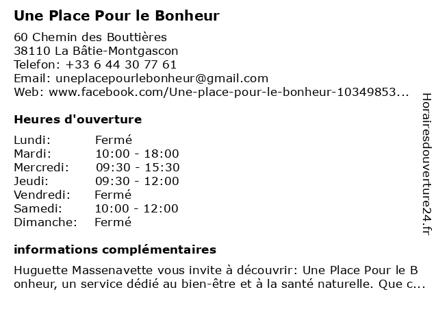 | Lundi | Fermé |