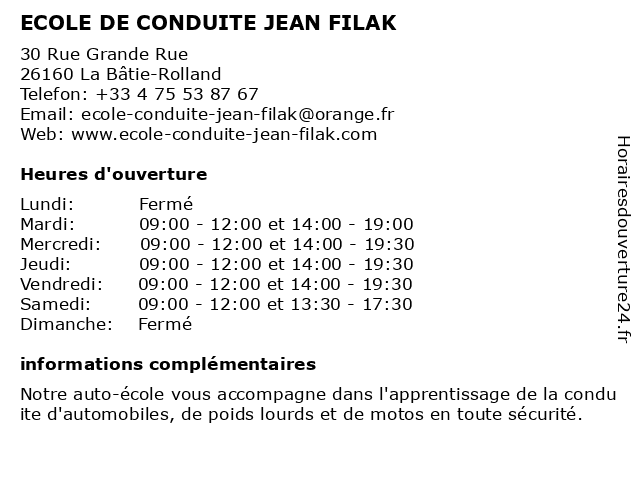 1 Ecole De Conduite Jean Filak (Distance: 8,48 km) Le Village, 26450 Cléon-d'Andran conduite, de, ecole, filak, jean 2 Ecole De Conduite Jean Filak (Distance: 16,17 km) 10 Place de l'Ancien Collège, 26220 Dieulefit conduite, de, ecole, filak, jean 3 École primaire publique (Distance: 0,10 km) - Rue du Moulin, 26160 La Bâtie-Rolland bâtie, ecole, education, la, maternelle, primaire, publique, rolland, services, école, élémentaire 4 Guillon Jean-Luc (Distance: 2,20 km) 120A Chemin de Pancrace, 26740 Montboucher-sur-Jabron guillon, jean, luc 5 AXA Assurance JEAN FRANCOIS DOMELA (Distance: 7,69 km) 17 Allée Juliette Astier, 26200 Montélimar assurance, assurance décès, assurance entreprise, assurance epargne, assurance invalidité, assurance patrimoine, assurance profession libérale, assurance protection juridique, assurance prévoyance, assurance santé, assurance vie, axa, domela, francois, jean 6 Drevon Jean-Christophe (Distance: 9,27 km) 95 Rue Jean Moulin, 26740 Marsanne christophe, drevon, jean, restaurants |
