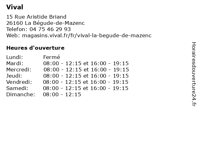 1 Vival (Distance: 10,47 km) 10 Place Abbé Magnet, 26220 Dieulefit by, casino, droguerie, d’hypermarchés, frais, fruits et légumes, hygiène, parfumerie et autres produits non alimentaires., surgelés, vival, épicerie 3 Vival (Distance: 11,35 km) 43 Route de Crest, 26740 Saint-Marcel-lès-Sauzet droguerie, d’hypermarchés, frais, fruits et légumes, hygiène, parfumerie et autres produits non alimentaires., surgelés, vival, épicerie 4 Vival (Distance: 14,78 km) 113 Rue Pierre Julien, 26200 Montélimar bread, deli, fish shop, gas bottles, photocopy, removing packages, vival, wine cellar 5 Vival (Distance: 14,86 km) - Place Emile Loubet, 26740 Marsanne alimentaire, supermarché, supérette, vival, épicerie 6 Vival (Distance: 18,31 km) , Avenue Charles de Gaulle, 84820 VISAN bread, deli, fish shop, gas bottles, photocopy, removing packages, vival, wine cellar |