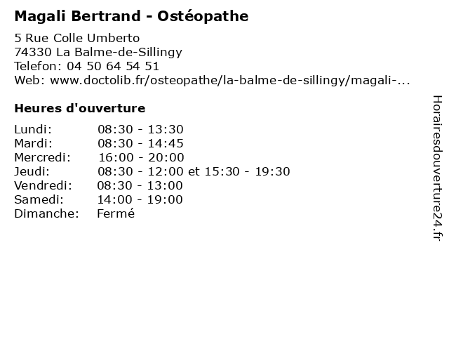 1 Dr Magali Farines-Raffoul - Pharmacien Hospitalier (Distance: 6,91 km) 1 avenue de l'hôpital, 74370 Epagny Metz-Tessy annecy, cachet, centre, dr, farines, genevois, hospitalier, magali, medicament, pharmacie, pharmacien, raffoul, service 2 Medecin Bertrand Martel (Chirurgien thoracique et cardio-vasculaire) ) (Distance: 8,64 km) 685 Route de Menthonnex, 74370 Argonay bertrand, cardio, chirurgien, docteur, et, martel, medecin, sante, services, thoracique, vasculaire 3 Dr Magali Appel - Pédiatre (Distance: 8,70 km) 6 Rue Jean-Louis Grivaz, 74000 Annecy appel, dr, magali, médecins, médicaments, pédiatre, santé, secrétariat, spécialiste 4 Magali Hennetier - Psychologue (Distance: 8,88 km) 9 Boulevard Decouz, 74000 Annecy hennetier, magali, psy, psychiatre, psychologue, sante, soins 5 Maître Bertrand Boachon - Avocat (Distance: 9,14 km) 2 avenue de Brogny, 74000 Annecy avocat, avocate, avocats, bertrand, boachon, civils, droits, juridiques, maître 6 Dr Magali Belval - Chirurgien-dentiste (Distance: 9,29 km) 24 Rue Vaugelas, 74000 Annecy belval, chirurgien, dentaire, dentiste, dr, implantologie, magali, parodontologie |