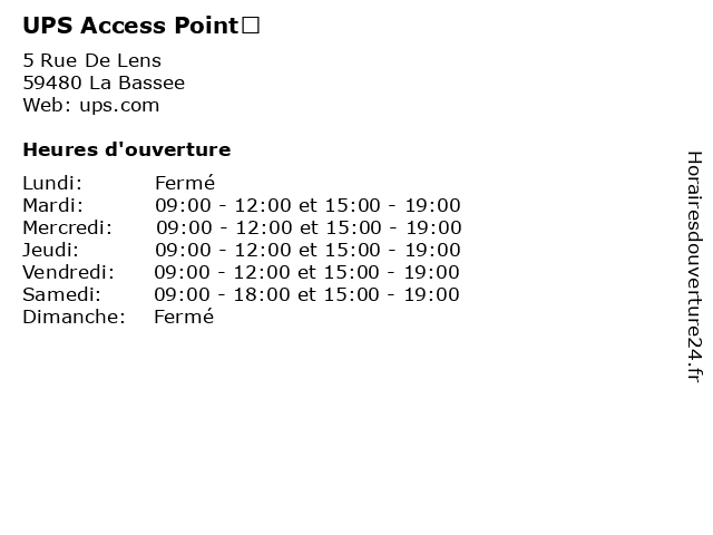 1 UPS Access Point™ (Distance: 2,95 km) 1 Rue Des Martyrs, 62138 Douvrin access, archiviazione, giochi, il, il monitoraggio, il trasporto, l'ups, la fatturazione, laboratorio, pagamenti, point™, servizio di guida, snc, soluzione ups, ups 2 UPS Access Point™ (Distance: 5,89 km) 87 Route De Meurchin, 62410 Wingles access, archiviazione, giochi, il, il monitoraggio, il trasporto, l'ups, la fatturazione, laboratorio, pagamenti, point™, servizio di guida, snc, soluzione ups, ups 3 UPS Access Point™ (Distance: 6,42 km) 16 Rue Jules Guesde, 59221 Bauvin access, archiviazione, giochi, il, il monitoraggio, il trasporto, l'ups, la fatturazione, laboratorio, pagamenti, point™, servizio di guida, snc, soluzione ups, ups 4 UPS Access Point™ (Distance: 7,21 km) 19 Rue Roger Salengro, 62410 Meurchin access, archiviazione, giochi, il, il monitoraggio, il trasporto, l'ups, la fatturazione, laboratorio, pagamenti, point™, servizio di guida, snc, soluzione ups, ups 5 UPS Access Point™ (Distance: 8,18 km) 2 Place De La Republique, 62750 Loos En Gohelle access, archiviazione, giochi, il, il monitoraggio, il trasporto, l'ups, la fatturazione, laboratorio, pagamenti, point™, servizio di guida, snc, soluzione ups, ups 6 UPS Access Point™ (Distance: 8,19 km) 55 Rue Jean Jaures, 59184 Sainghin En Weppes access, archiviazione, giochi, il, il monitoraggio, il trasporto, l'ups, la fatturazione, laboratorio, pagamenti, point™, servizio di guida, snc, soluzione ups, ups |