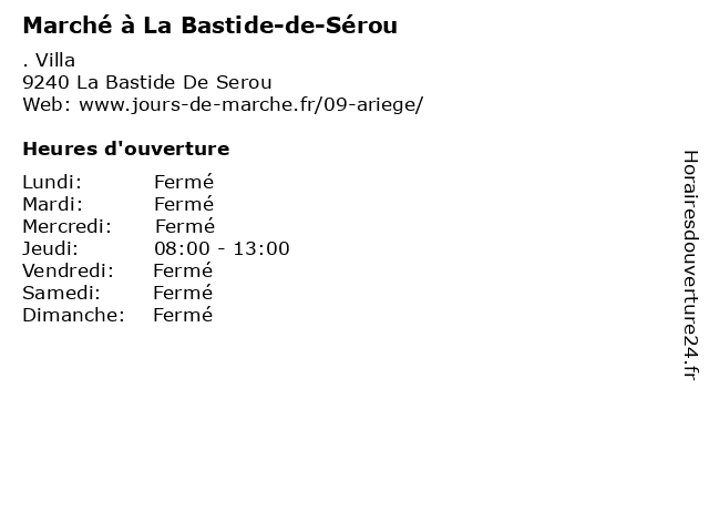 | Jeudi | 08:00-13:00 |