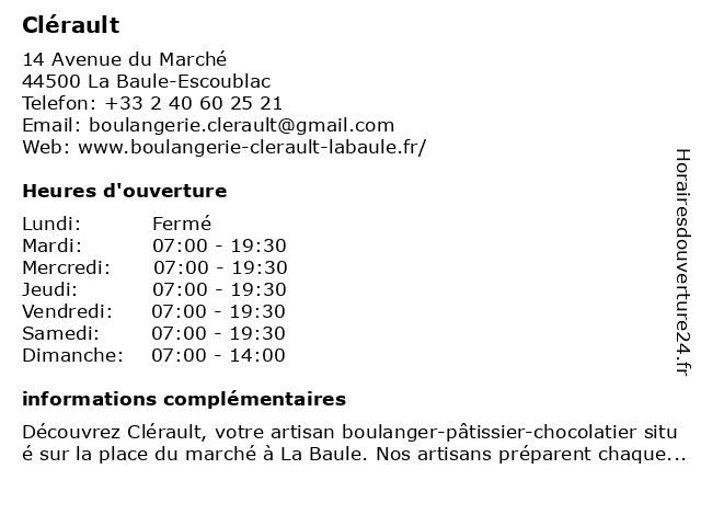 | Lundi | Fermé |