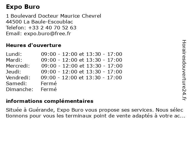 | Vendredi | 09:00-12:00 et 13:30-17:00 |