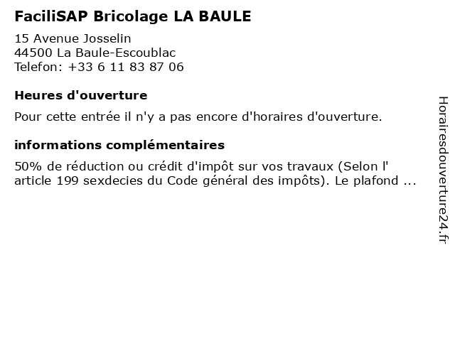 Appeler FaciliSAP Bricolage LA BAULE | |