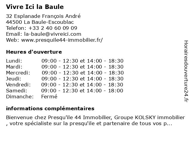 | Lundi | 09:00-12:30 et 14:00-18:30 |