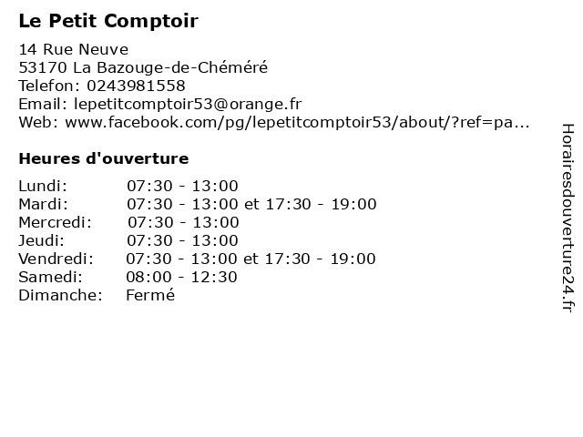 | Mardi | 07:30-13:00 et 17:30-19:00 |