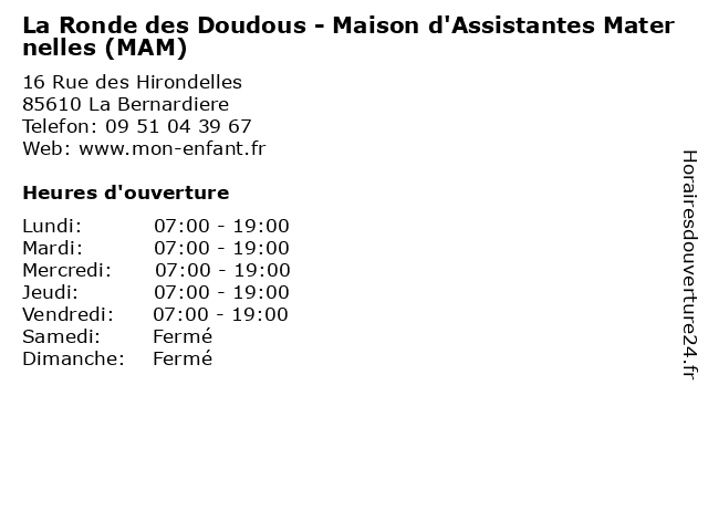 1 La Maison de Pipo et Zita - Maison d'Assistantes Maternelles (MAM) (Distance: 6,31 km) 15 Rue du Pré Neuf, 44190 Gorges d'assistantes, de, enfants, et, famille, jardin d'enfants, la, maison, mam, maternelles, pipo, soins, zita 2 M'amuse et M'éveil - Maison d'Assistantes Maternelles (MAM) (Distance: 11,66 km) 3 Rue du Gué des Joncs, 85600 Saint-Georges-de-Montaigu crèche, d'assistantes, enfants, et, famille, jardin d'enfants, m'amuse, m'éveil, maison, mam, maternelles, soins 3 La maison des doudous (Distance: 11,89 km) 2 Rue Saint-Michel, 44330 Vallet caregivers houses, child care, des, doudous, family home, home care, kindergartens, la, maison, micro-nurseries, parental home 4 La Maison des Doudous - Crèche collective (Distance: 11,93 km) 2 Rue Saint-Michel, 44330 Vallet collective, crèche, des, doudous, enfants, famille, jardin d'enfants, la, maison, soins 5 Ronde chaude et Bonne (Distance: 15,53 km) 6 Place De La Mairie, 44116 Vieillevigne bonne, chaude, cuisine, et, lemoine, magaly, nourriture, planchenault, restaurants, ronde 6 La Maisonnette - Maison d'Assistantes Maternelles (MAM) (Distance: 19,06 km) Allée de la charmille, 44140 Geneston d'assistantes, enfants, famille, jardin d'enfants, la, maison, maisonnette, mam, maternelles, soins |