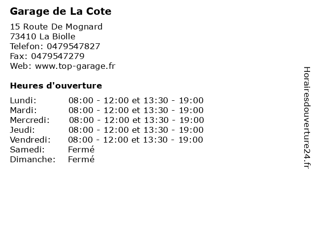 Lundi | 08:00-12:00 et 13:30-19:00 |