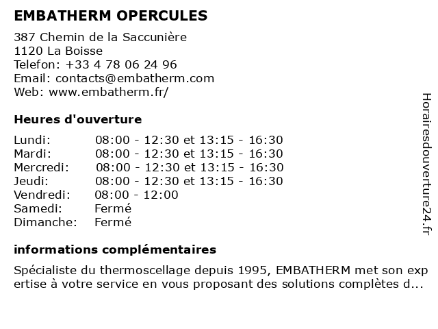 EMBATHERM OPERCULES à La Boisse