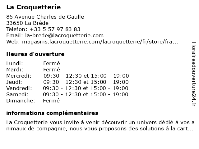 1 La Croquetterie (Distance: 0,52 km) 86 avenue du Général de Gaulle, 33650 La Brède animal, chats, chiens, comportement, croquette, croquetterie, la, nutrition 3 La Croquetterie (Distance: 16,66 km) 45 avenue de l'Entre Deux Mers, 33670 Créon animal, chats, chiens, comportement, croquette, croquetterie, la, nutrition 6 |