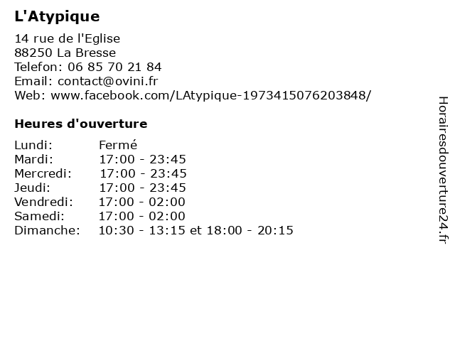 | Samedi | 17:00-02:00 |