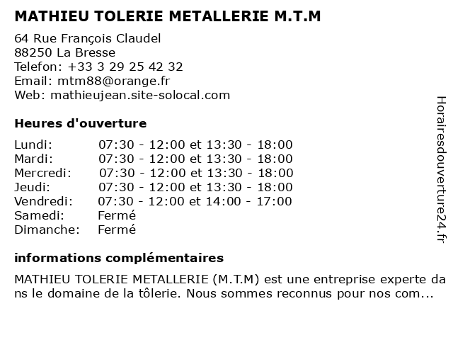 Termes de recherche pour MATHIEU TOLERIE METALLERIE M.T.M:mathieu, métallerie, tolerie, m.t.m |