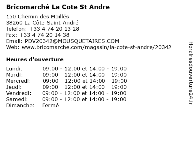 | Samedi | 09:00-12:00 et 14:00-19:00 |