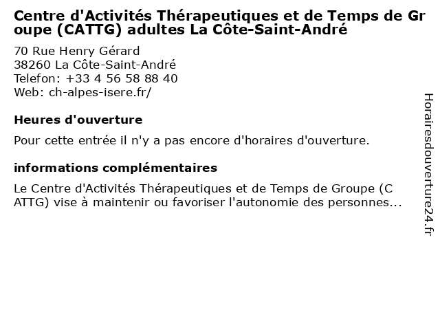 Termes de recherche pour Centre d'Activités Thérapeutiques et de Temps de Groupe (CATTG) adultes La Côte-Saint-André:la, et, de, saint, andre, centre, temps, cote, groupe, adultes, d'activites, therapeutiques, cattg |