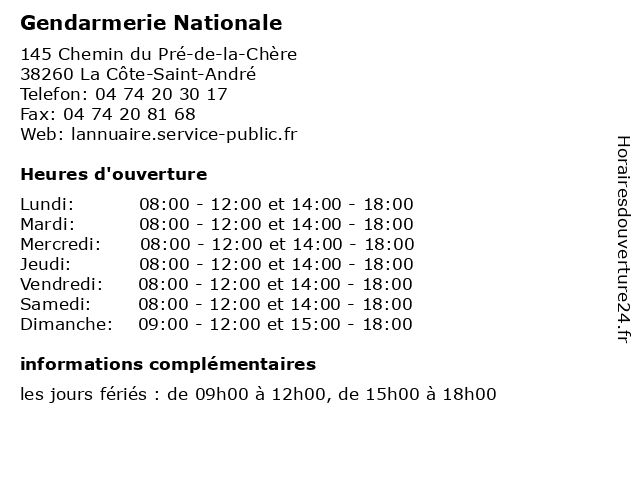 1 Gendarmerie Nationale (Distance: 7,97 km) 60 Route de Chartreuse, 38590 Saint-Étienne-de-Saint-Geoirs brigade, commandant, communauté, gendarme, gendarmerie, nationale, proximité, sécurité 2 Gendarmerie Nationale (Distance: 12,28 km) 65 Rue de la Plaine, 38690 Le Grand-Lemps brigade, commandant, communauté, gendarme, gendarmerie, nationale, proximité, sécurité 3 Gendarmerie Nationale (Distance: 15,13 km) 40 Impasse de la Sapinière, 38940 Roybon brigade, commandant, communauté, gendarme, gendarmerie, nationale, proximité, sécurité 4 Gendarmerie Nationale (Distance: 15,77 km) 77 Route de Villeneuve de Marc, 38440 Saint-Jean-de-Bournay brigade, commandant, communauté, gendarme, gendarmerie, nationale, proximité, sécurité 5 Gendarmerie Nationale (Distance: 17,65 km) - Chemin des Sauzays, 38270 Beaurepaire brigade, commandant, communauté, gendarme, gendarmerie, nationale, proximité, sécurité 6 Gendarmerie Nationale (Distance: 18,14 km) 339 Rue de la République, 38140 Renage brigade, commandant, communauté, gendarme, gendarmerie, nationale, proximité, sécurité |