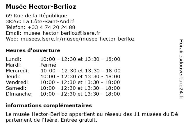 | Mercredi | 10:00-12:30 et 13:30-18:00 |