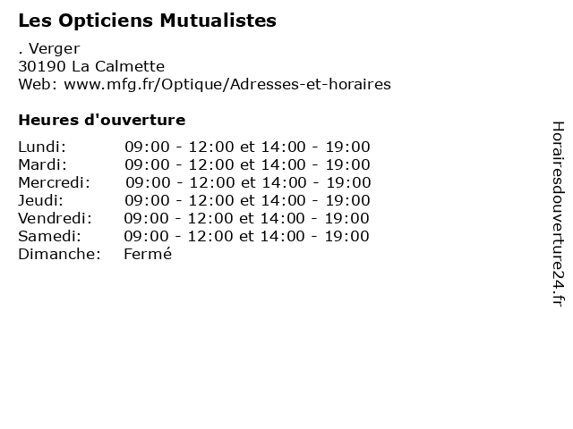 | Mercredi | 09:00-12:00 et 14:00-19:00 |