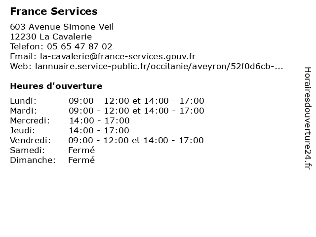 | Mardi | 09:00-12:00 et 14:00-17:00 |