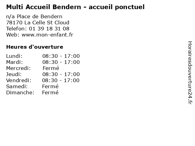 1 Multi Accueil Bendern - accueil régulier (Distance: 0,00 km) n/a Place de Bendern, 78170 La Celle St Cloud accueil, bendern, caregivers houses, child care, family home, home care, kindergartens, micro-nurseries, multi, parental home, régulier 2 Bibliothèque Municipale Bendern (Distance: 0,04 km) 4 place du Comte de Bendern, 78170 La Celle Saint-Cloud bendern, bibliothèque, cd audio, cd.rom, livres, municipale, revues 3 Boucherie Bendern AVs (Distance: 0,11 km) 11 Place du Comté de Bendern, 78170 La Celle-Saint-Cloud avs, bendern, boucherie, charcuterie, viandes, volaille 4 Mon-enfant.fr - Multi Accueil Prive - Etoile (Distance: 13,07 km) 33 Rue Vernet, 75008 Paris accueil, caregivers houses, child care, enfant.fr, etoile, family home, home care, kindergartens, micro-nurseries, mon, multi, parental home, prive 5 Multi Accueil (Distance: 17,28 km) 32 Avenue Général de Gaulle, 94240 L'Haÿ-les-Roses accueil, caregivers houses, child care, family home, home care, kindergartens, micro-nurseries, multi, parental home 6 Croix-Rouge Française (MULTI) (Distance: 18,27 km) 30 Rue de Neauphle, 78310 Coignieres aide, creche, croix, française, mas, multi, prévention, rouge, rééducation, santé, services |